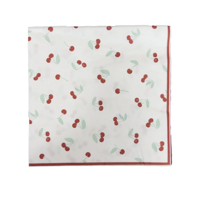 Com estampa charmosa de cerejinhas vermelhas, esses guardanapos de papel trazem um ar divertido e retrô para a mesa. São perfeitos para aniversários, piqueniques, chás ou festas com tema frutinhas, anos 50 ou até um clima de verão tropical.