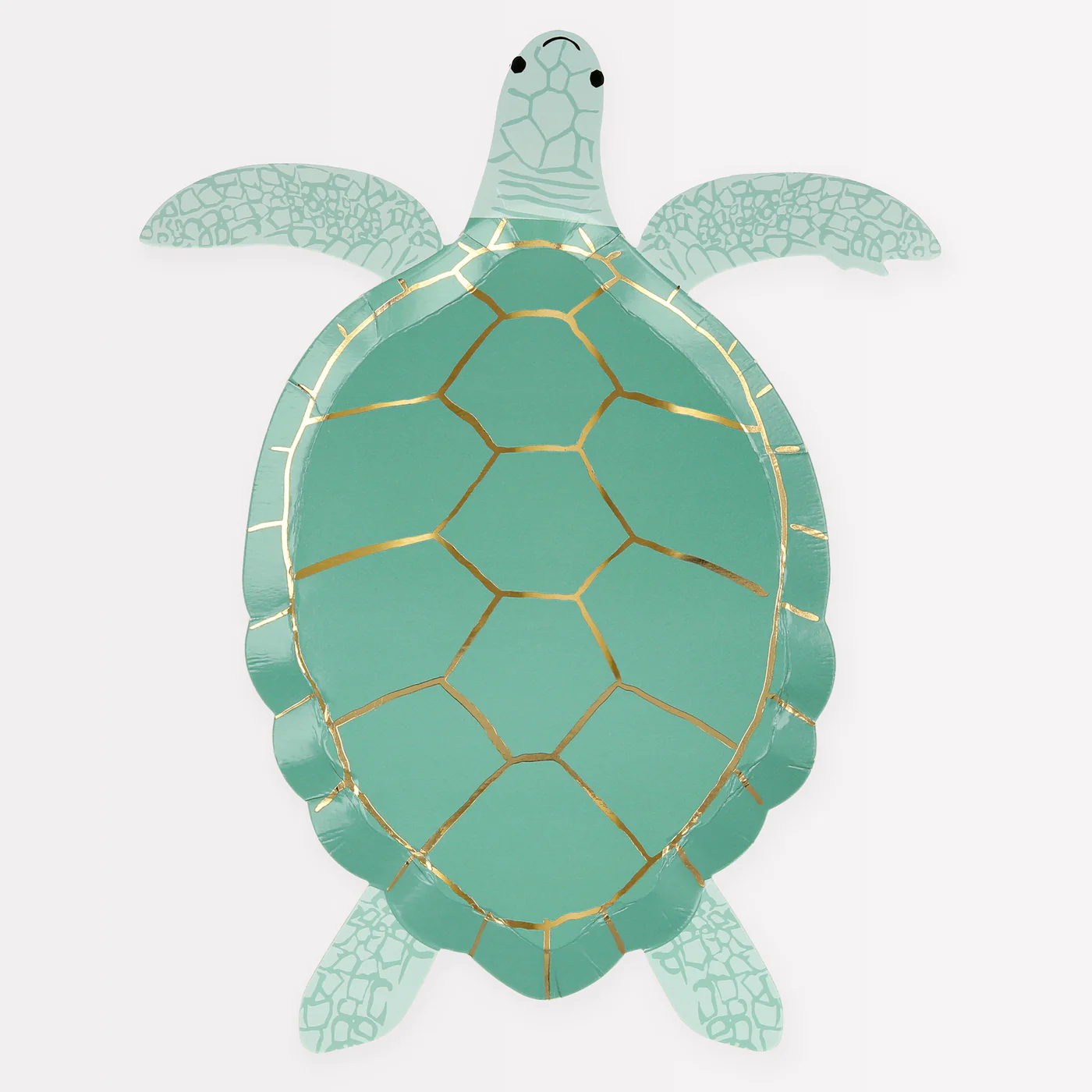 Mergulhe fundo numa mesa divertida com o Prato Tartaruga Meri Meri, um daqueles itens que já chegam dando um up na decoração. Com formato de tartaruga e acabamento com detalhes em foil dourado, ele cria uma decoração temática alegre, criativa e superespecial, perfeita para festas fundo do mar e aniversários infantis.